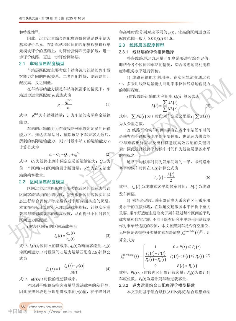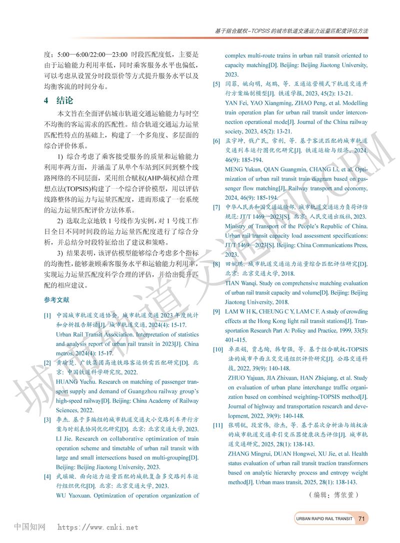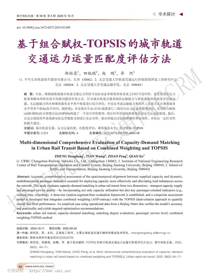 基于组合赋权-TOPSIS的城市轨道交通运力运量匹配度评估方法