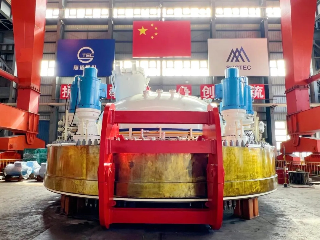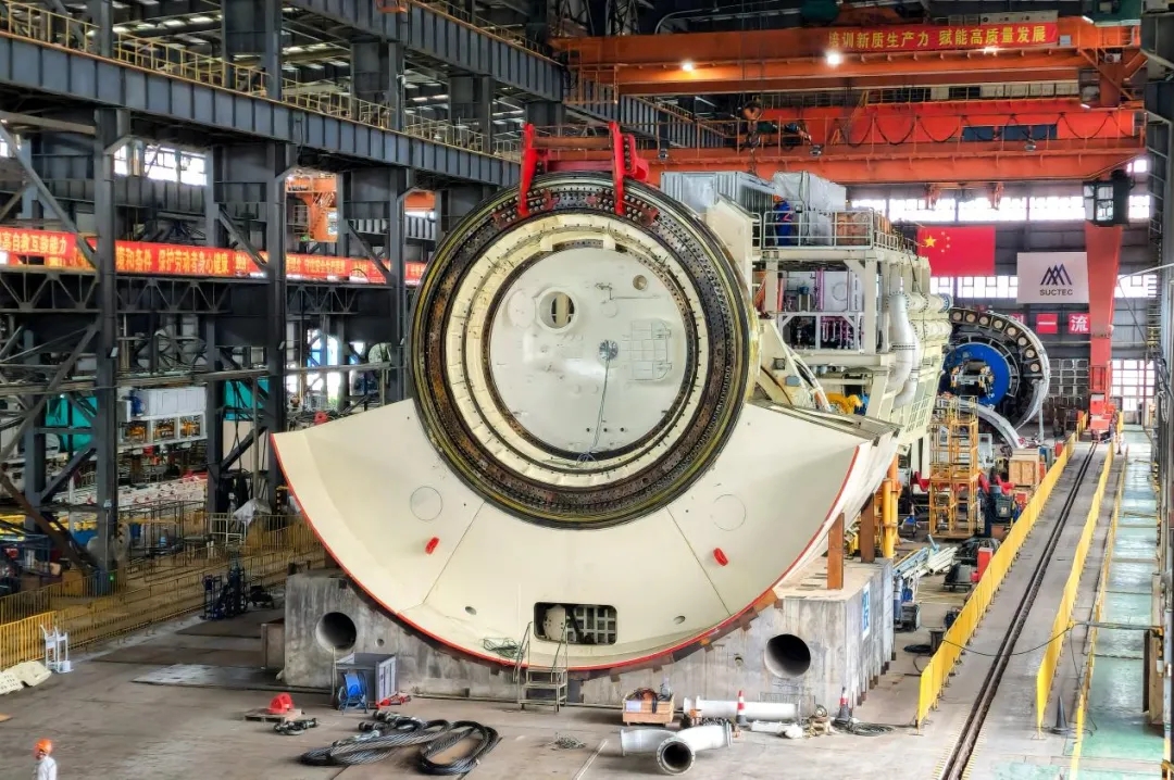 当前,已上线组装的首批两台超大直径盾构机整机生产进度分别完成60%、75%,将于今年年底完成制造下线。其中一台将用于竺山湖西工作井至竺山湖东工作井之间约7.6公里的盾构区间,其刀盘直径达14.02米、整机长度约120米、总重约3200吨;另一台将用于梅梁湖西至梅梁湖中工作井之间约5.5公里的盾构区间,其刀盘直径达14.05米、整机长度约130米、总重约3600吨。