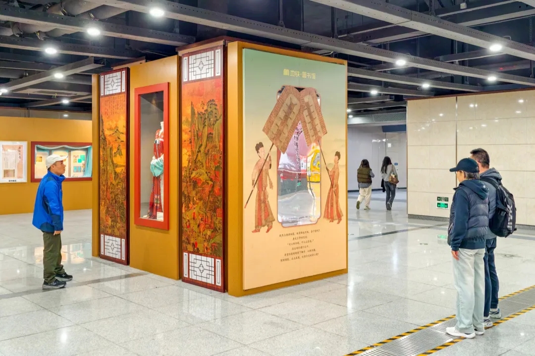 在展出古籍、书法、名画及盛唐服饰等实物展品的同时,展览还推荐了大唐诗歌、话本、绘画、音乐、名人传记、哲学类书籍,向乘客全景式展示唐朝的文艺范儿。