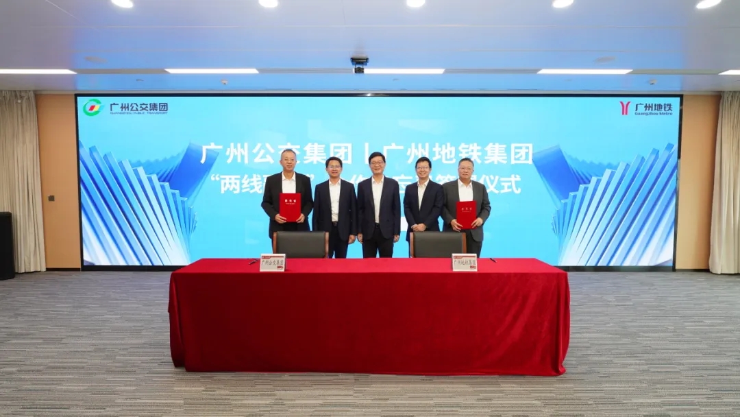 近日,广州公交集团与广州地铁集团正式签署“两线融合”合作备忘录。 广州公交集团党委书记、董事长覃海宁,党委副书记、副董事长、总经理宋小明与广州地铁集团党委书记、董事长刘智成共同见证签约,广州公交集团党委委员、副总经理刘伟与广州地铁集团党委委员、副总经理张贻兵代表双方签署备忘录。