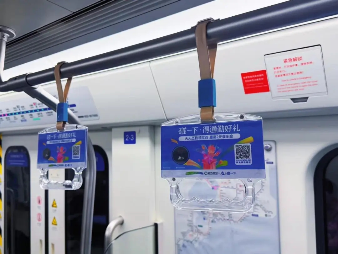 青岛地铁将传统拉手升级为智能交互入口,通过在2号线、3号线部分列车拉手内置NFC芯片,实现“一碰即惠”,打造了一座移动的“惠客厅”。乘客无需打开APP,在乘车时用手机轻触扶手感应区,即可跳转页面领取优惠并参与抽奖。