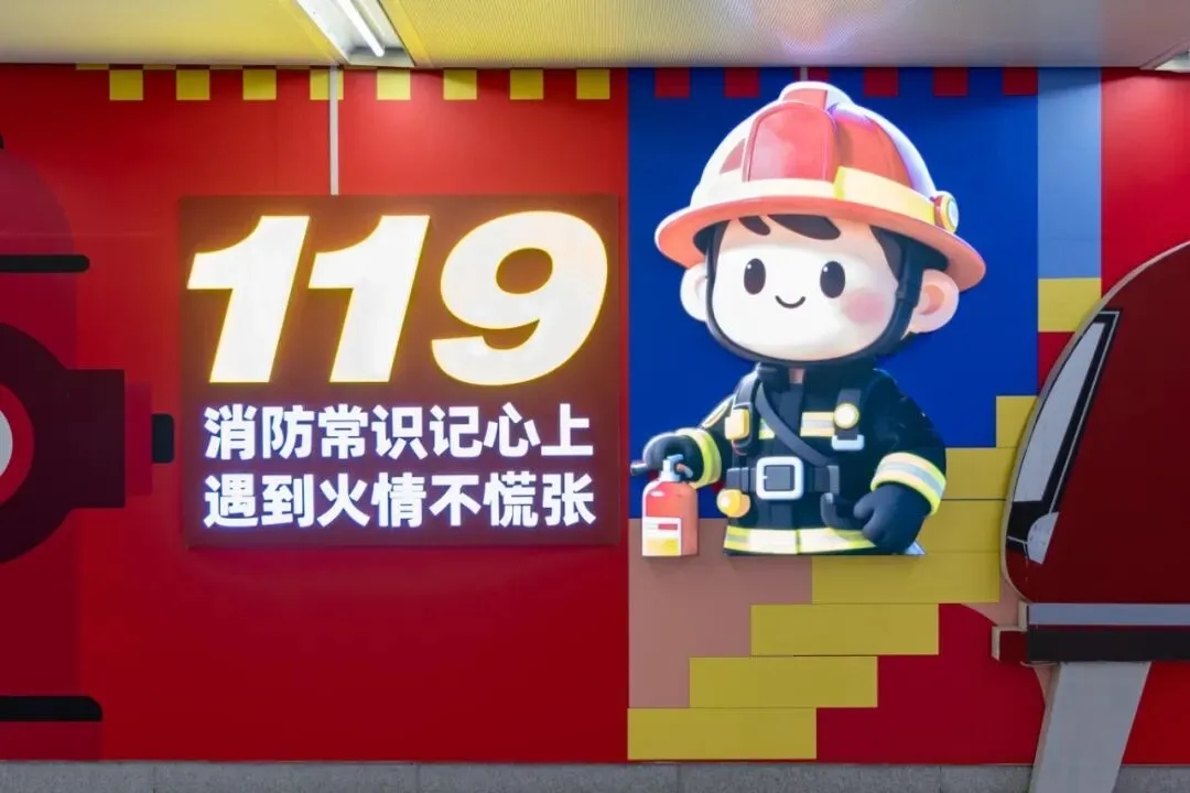 步入天津地铁2号线鼓楼站,明快活泼的消防主题色彩便映入眼帘,立体卡通造型与消防元素色块的巧妙结合,让知识获取不再是枯燥的阅读,而是一次轻松有趣的沉浸式体验。此次升级精心设置了“六大专题板块”,打造了一个可看、可学、可互动的安全知识长廊: