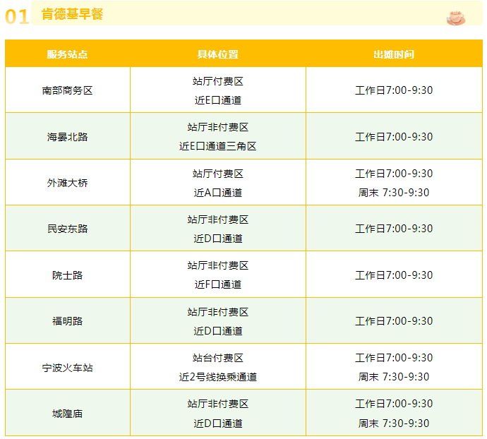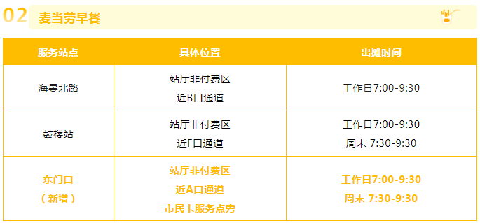 工作日服务时间为7:00-9:30,外滩大桥、宁波火车站、鼓楼站在周末同步开放,服务时间调整为7:30-9:30。精准对接早高峰需求,不用早起排队,地铁站内就能解锁星式美味。