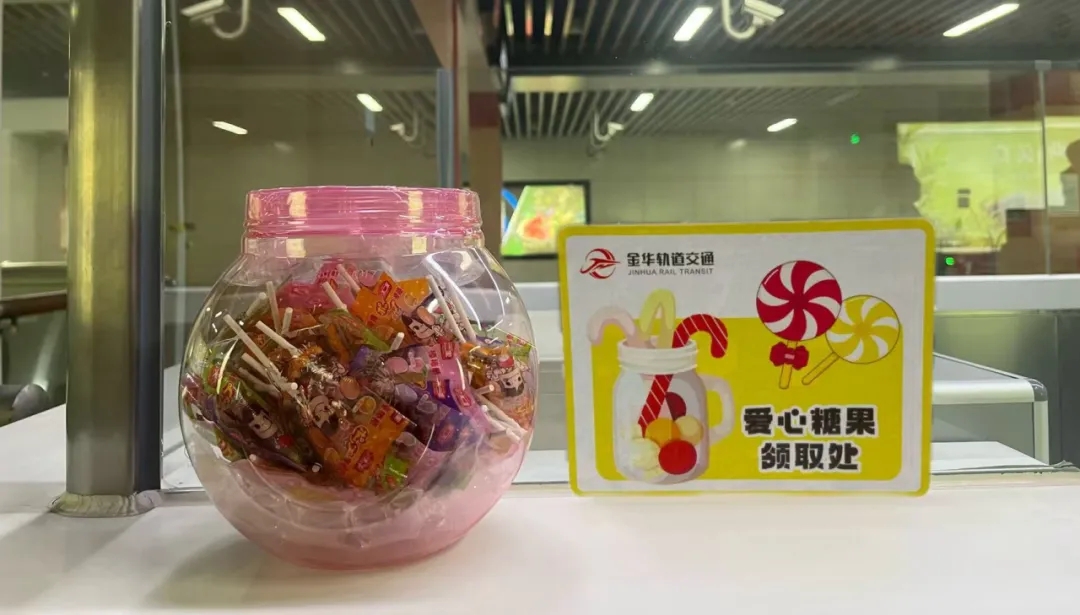 在忙碌的出行路上,难免会遇到一些小状况:早高峰赶车来不及吃早餐,途中突然头晕乏力;带娃出门,孩子因环境陌生而哭闹不安……别担心,这些出行中的“小状况”,金华轨道交通“爱心糖果”随时为您甜蜜化解。