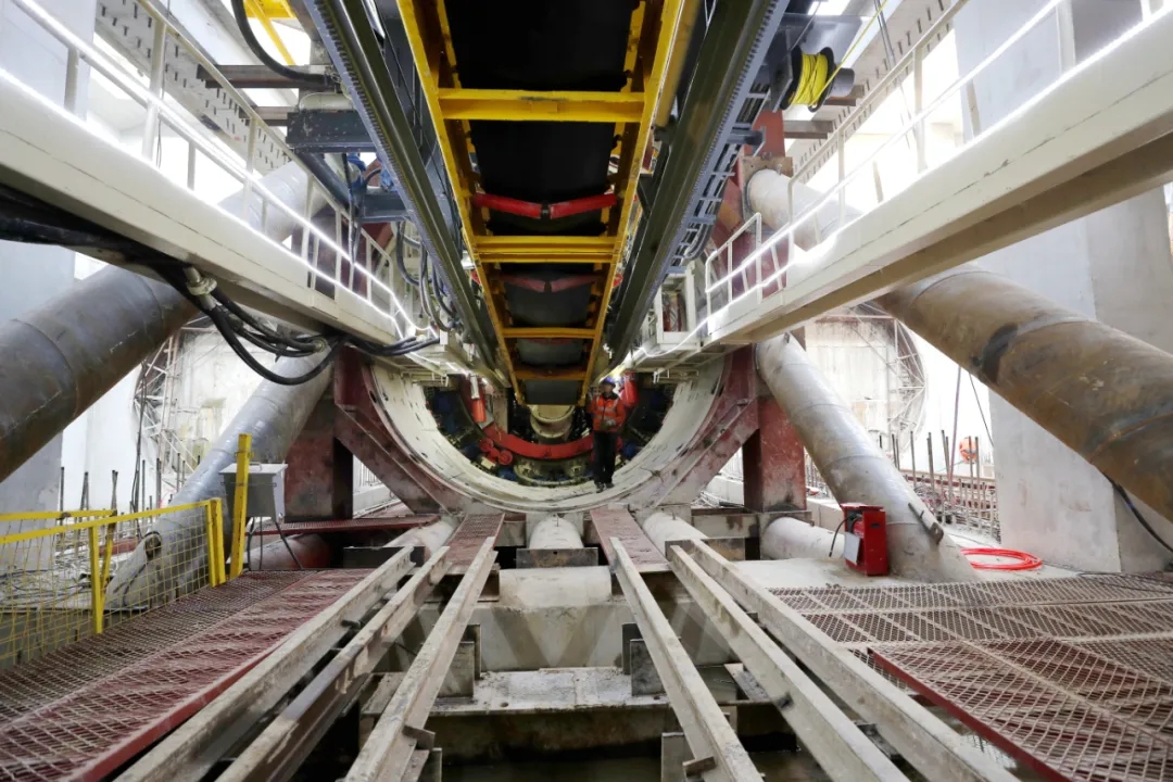为确保工程顺利推进,施工团队采取了一系列创新举措:实时优化掘进参数和推力分布,将标准1.5米管片调整为1.2米管片,增强转弯灵活性,确保盾构平稳推进。目前,汤山站至出入场线盾构区间左线盾构机预计下周完成拼装,届时将实现左、右双线同步掘进。