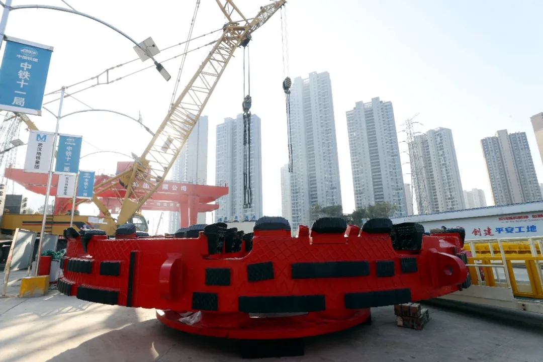 11号线四期汤山站至出入场线区间左线盾构机刀盘已就位,预计下周完成拼装。