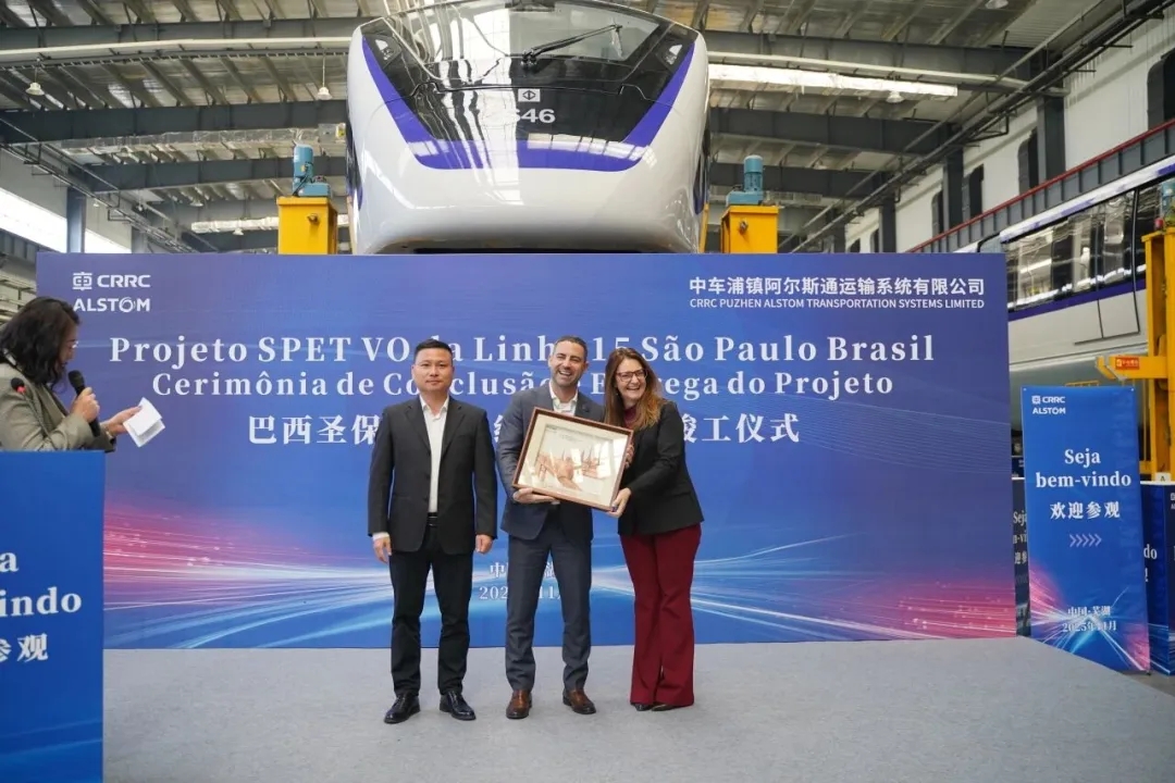 11月24日上午,巴西圣保罗15号线增购项目竣工交付仪式在公司静调车间举行。巴西圣保罗地铁公司总经理Antonio Julio Castiglioni Neto先生、阿尔斯通巴西公司总经理Suely Sola女士等贵宾受邀出席仪式,中车浦镇阿尔斯通总经理傅学军,公司党委书记、董事长邓锐,项目团队成员和员工代表等参加仪式,共同见证这一重要时刻。 巴西圣保罗地铁公司总经理Antonio Julio Castiglioni Neto先生对阿尔斯通及PATS团队的专业能力和辛勤付出表示高度肯定,并强调,此次项目竣工,标志着双方合作实现了重要里程碑。