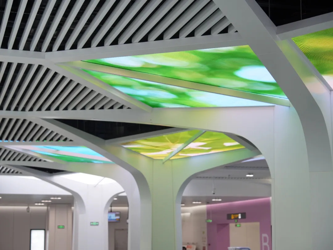 设计灵感源自站点西北侧的大蜀山国家森林公园。设计师将满山苍松翠柏、奇花异草的生态印象提炼而出,巧妙融入车站空间,营造出令人心旷神怡的地下生态氛围。最具特色的是通过LED屏幕呈现的“科技之树”与“生态之树”,将自然环境与地铁空间完美交织,让乘客在行进中感受自然的呼吸。