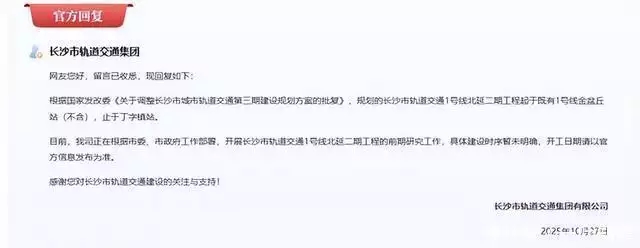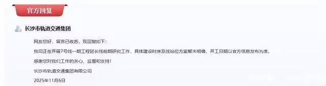 长沙轨道交通集团官方回复: