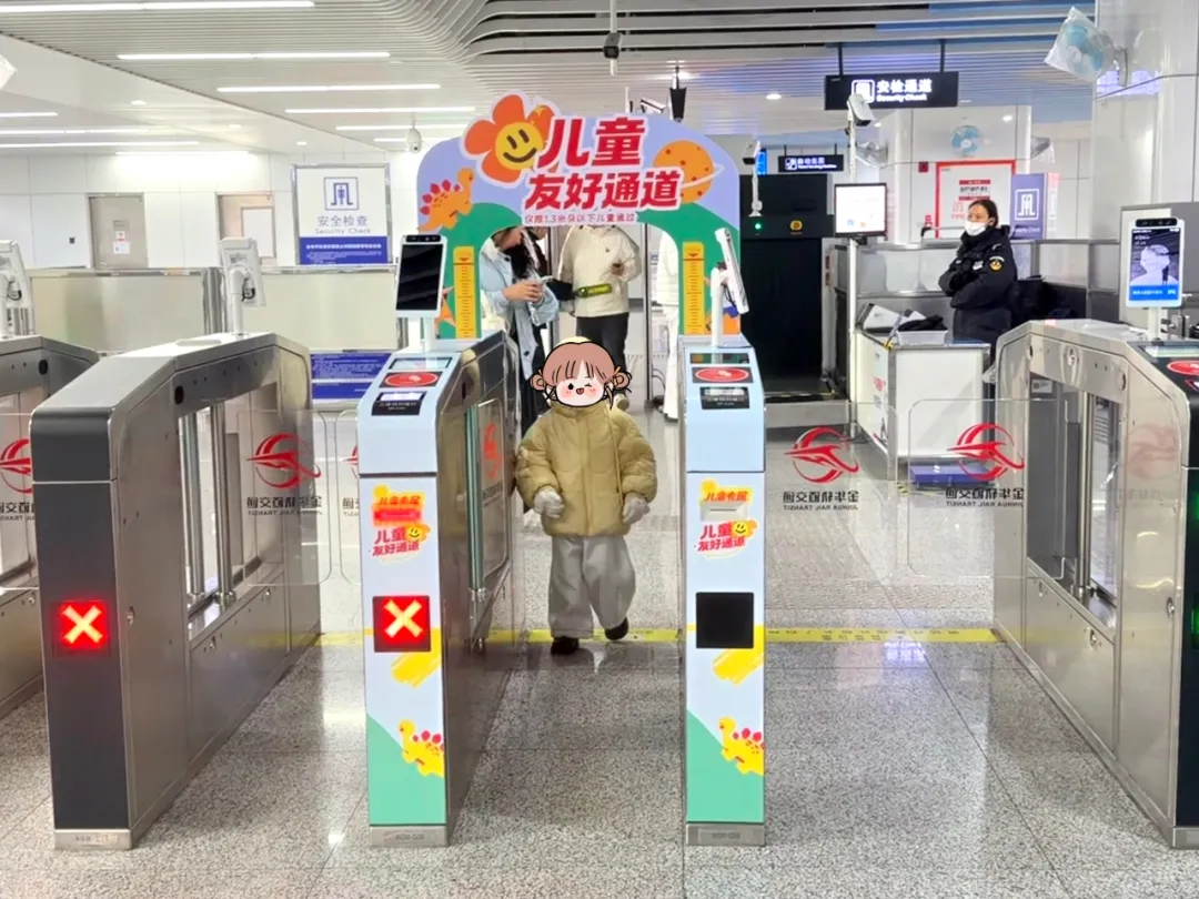 “儿童友好通道”专为1.3米以下儿童提供便捷通行,请其他乘客选择普通闸机通行,感谢大家的配合与支持!