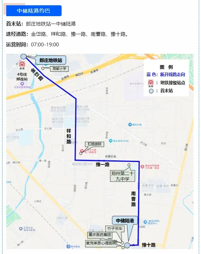 进一步满足市民多元化、个性化出行需求,切实提升通勤效率与出行体验,郎庄地铁口至中储陆港网约巴士已正式投入运营,为周边市民群众解锁便捷出行方式。 网约巴士线路覆盖中储物流港、郑州市二十九中、医院等多个出行热点区域,运营时间从7:00持续至19:00,全程5公里,共计5个站点,依据乘客实时需求灵活覆盖社区、商超、学校等出行热点区域,实现预约服务、按需接送、弹性运营功能,助力市民享受更具个性化、便捷化的公共交通服务。无论是清晨赶早班的职场人,还是午后外出办事的群众,亦或是傍晚返程的市民,都能享受到这份便捷服务。