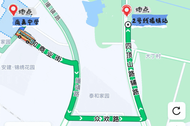 精准衔接尚真中学与轨道交通2号线撮镇站,助力师生快速融入轨道交通网络。