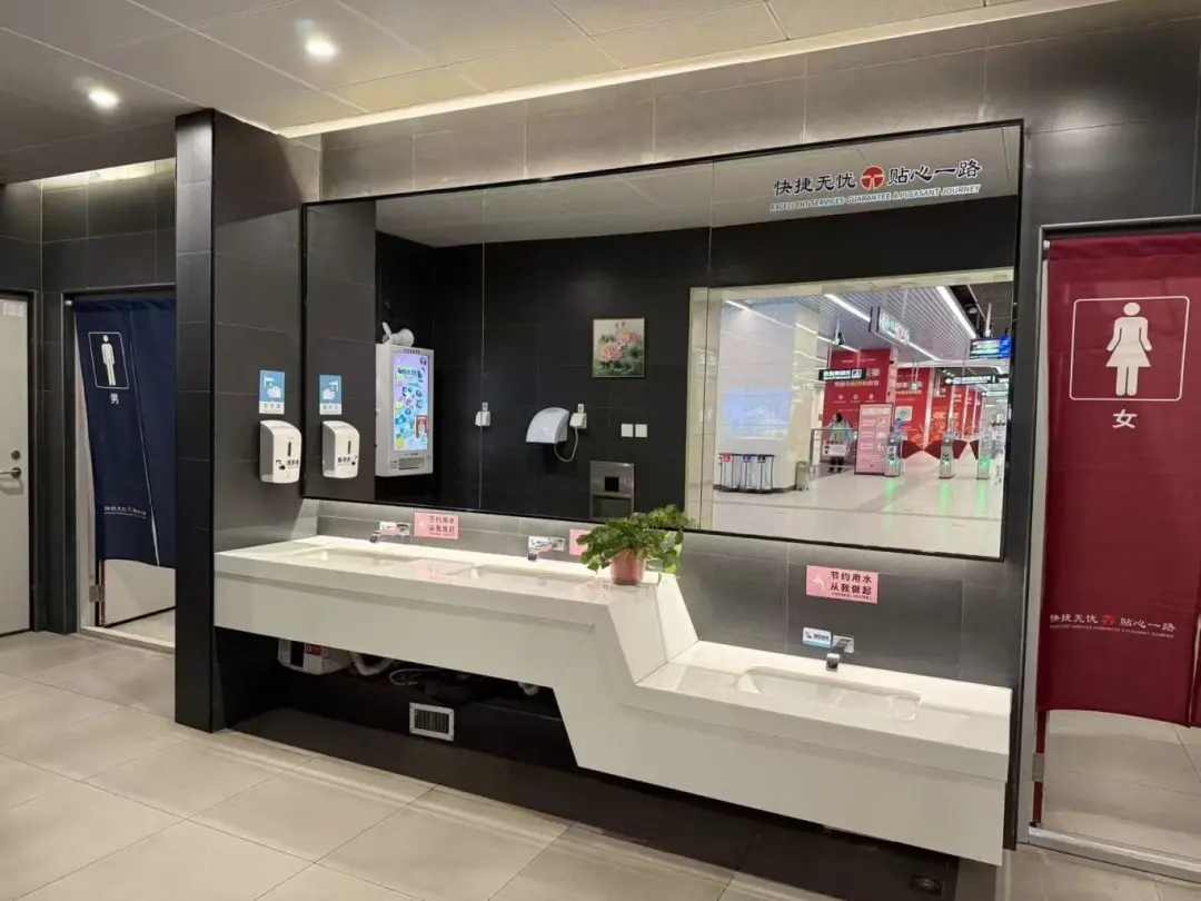 升级后的卫生间,处处细节流露出暖心守护,感应式取用洗手液干净卫生,通体柱贴、婴儿护理台、无障碍标识清晰暖心,管理看板让清洁状态一目了然……从设施到标识,每一处改动都在诉说:我们关心你的每一次出行体验。