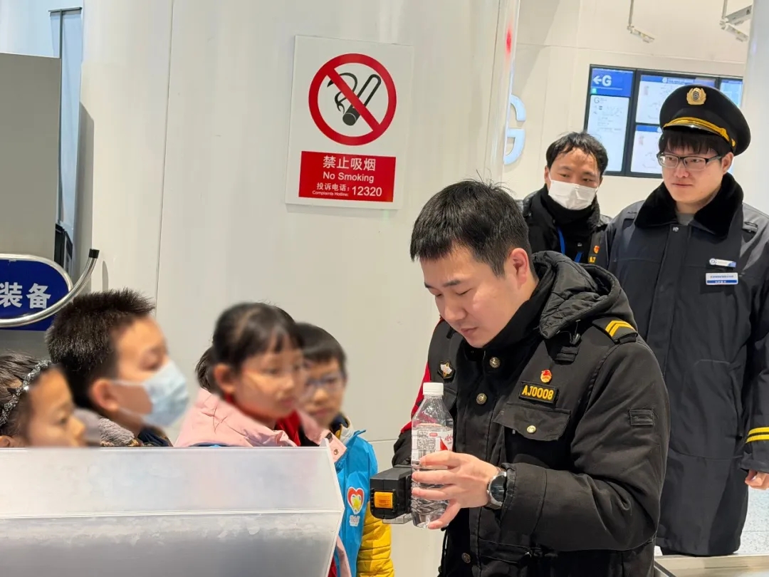 元旦假期期间,安华桥站区志愿者中队联合北方工业大学附属学校开展“请进来”活动。活动当天,由20余名师生、家长组成的“参观团”在地铁安华桥站开启了一场“沉浸式”地铁安全实践之旅,在探索中感受轨道交通的便捷与智慧,在互动学习中筑牢安全出行的意识防线。 为了让孩子们直观了解地铁出行知识,工作人员详细地为大家进行讲解。在安检设备区,安检人员手持安检仪,以一瓶矿泉水为教具演示检测流程,细致讲解安检设备的工作原理和地铁禁带品清单。身旁的志愿者帮孩子们转述疑问,工作人员则耐心解答“安检仪为何能识别液体”“哪些物品不能进站”等问题,让抽象的安检知识变得浅显易懂。孩子们围着设备认真观察,时不时举手向工作人员和志愿者提问,现场学习氛围格外浓厚。