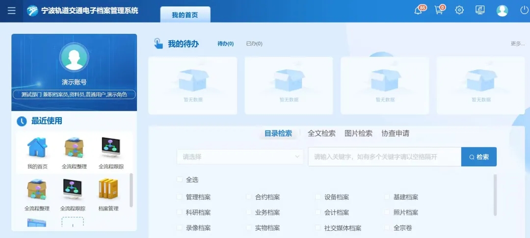 宁波轨道交通坚持“集中管理、集成共享”的建设理念,探索解决档案业务痛点,构建了一系列创新功能模块。