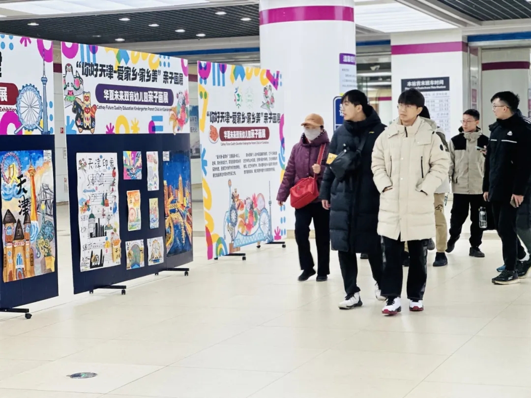 一幅幅充满童真的画作悄然绽放,孩子们笔下的海河波光、五大道洋楼、古文化街烟火气在展板上熠熠生辉,让奔波于途的人们不禁放缓脚步,在地铁的喧嚣里品味到一份宁静的艺术暖意。