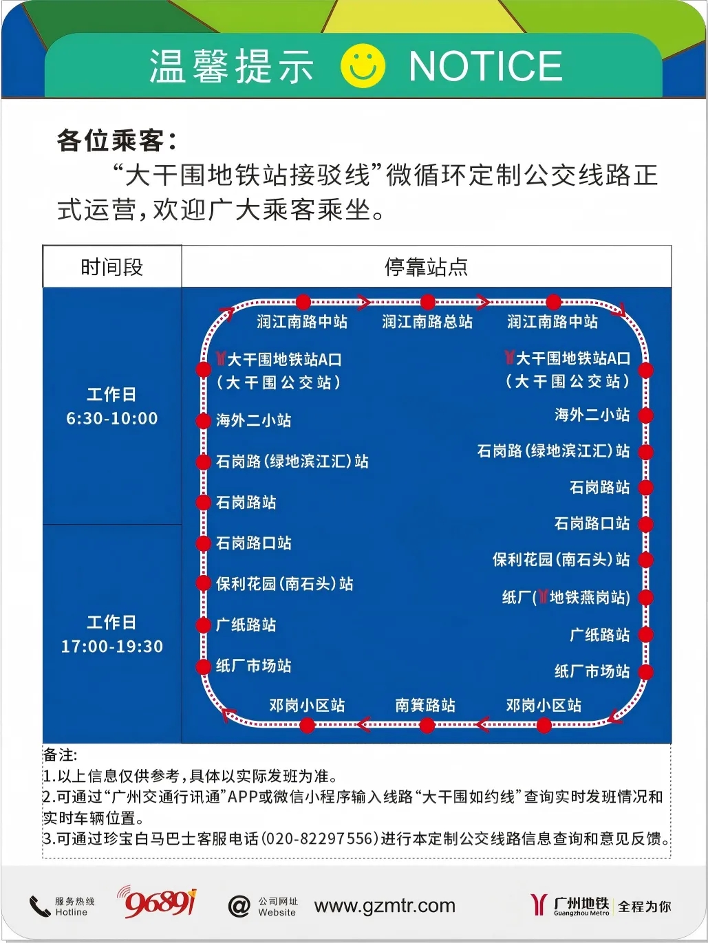 01、公交线路信息已同步至花围、大干围地铁站内广播、告示、电子屏