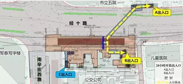 经十路沿线26座车站在运营时段内开放过街功能,通过增设引导标识,方便行人通行。