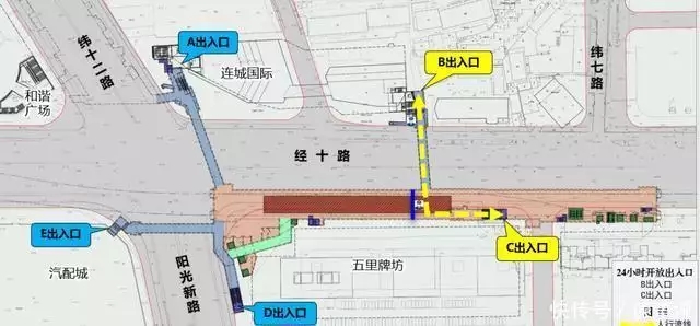 五里牌坊站“同站过街”人行流线示意图