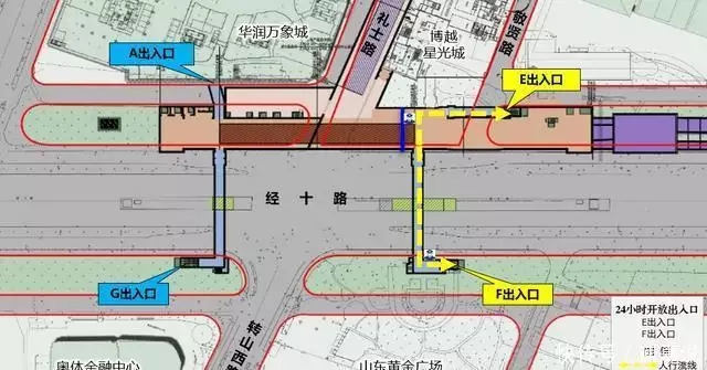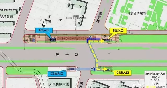 山东博物馆站“同站过街”人行流线示意图