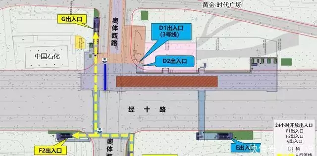 奥体中心站“同站过街”人行流线示意图
