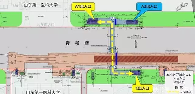 针对人流量更大、过街需求更迫切的6个站点,方案更是做了“升级”!营市街、五里牌坊、山东博物馆、转山西路(万象城)、奥体中心及第一医科大学共6座车站,通过优化流线、加强监控与安保等措施,实现全天候过街,保障夜间出行安全。
