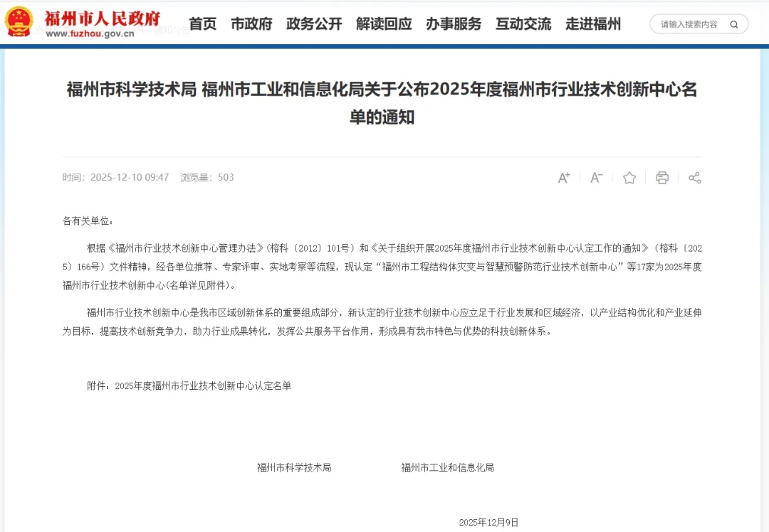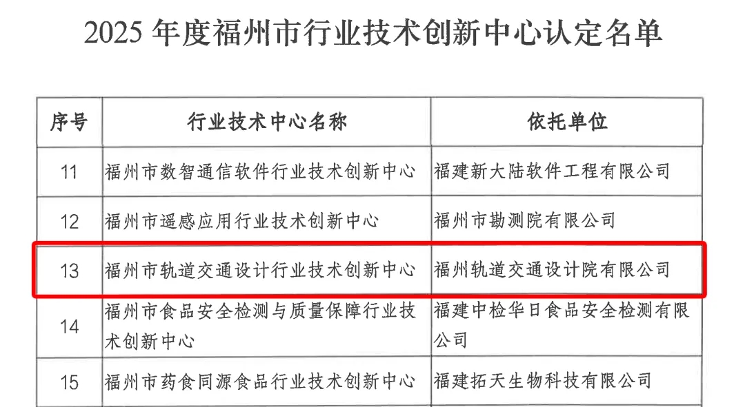 行业资讯|喜报!福州市轨道交通设计行业技术创新中心获市级认定