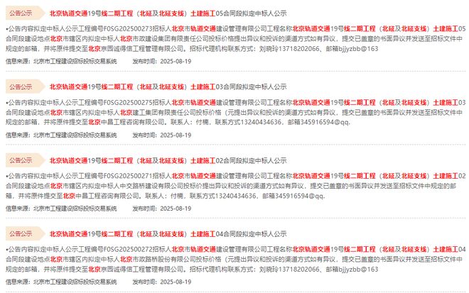 此前,官网发布了北京轨道交通19号线二期工程(北延及北延支线)土建施工中标人公示的相关消息。