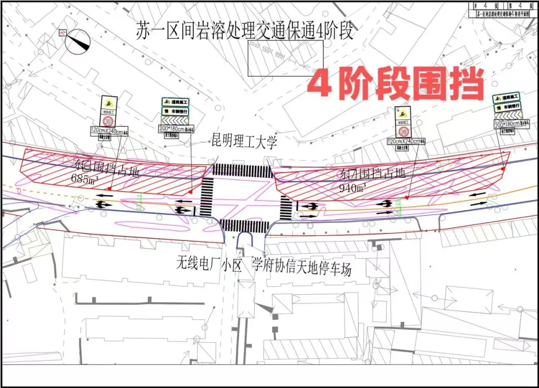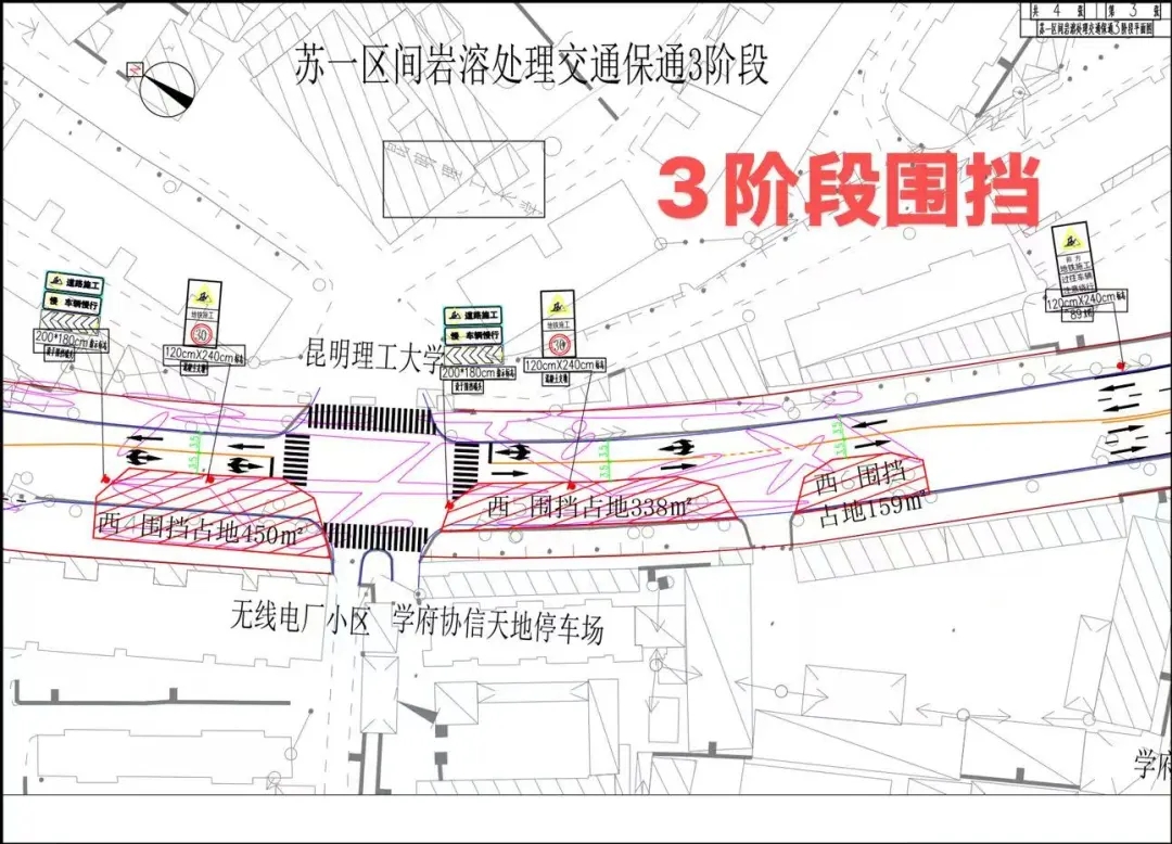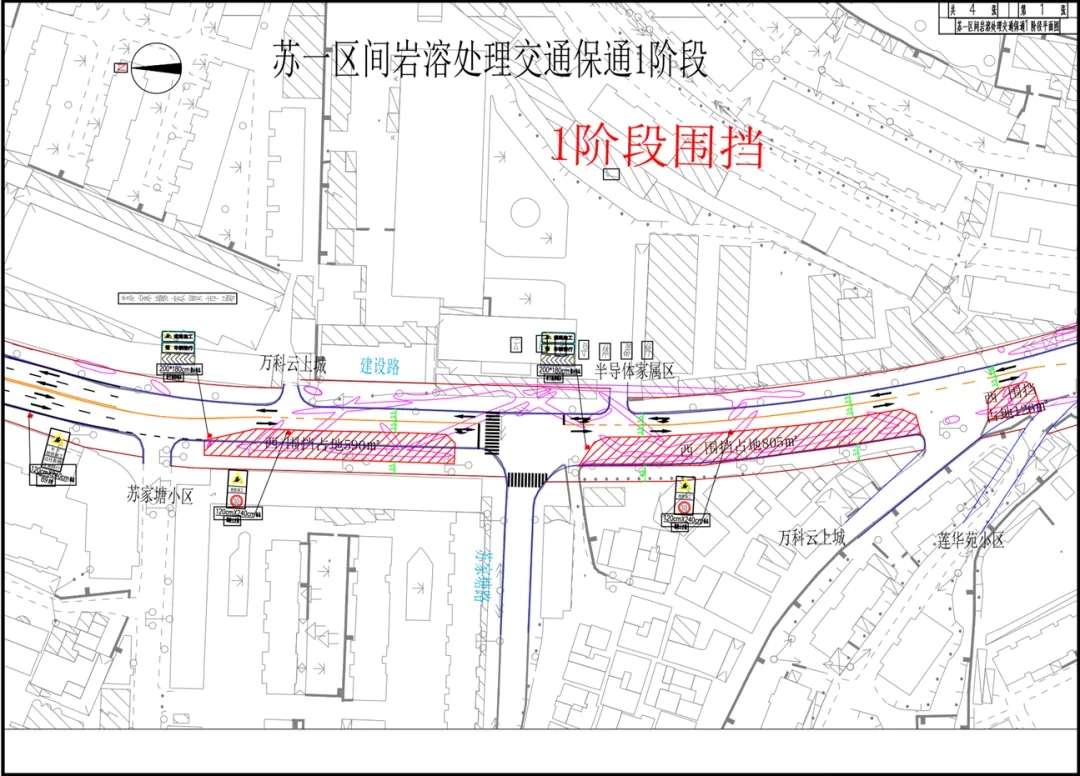 施工建设|昆明地铁1号线西北延工程苏家塘站至一二一大街站盾构区间溶洞处理第一期二阶段交通导改施工公告