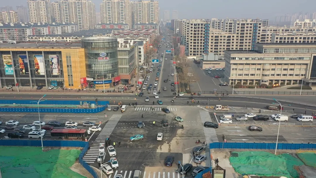 面对居民密集区与高频通行压力,项目团队坚持“策划先行、动态优化、精细管控”,与交管、设计、业主多方协调,将原五期导行优化为三期方案:一期(2022年9月30日)封围中北大道(万学路至外环西路段)及万卉路交口;二期(2024年11月28日)局部占用中北大道,退围主路局部,占用南侧辅路局部,恢复交口部分通行功能;三期聚焦收口,恢复中北大道主路与万卉路口交通,确保车辆行人安全有序通行。
