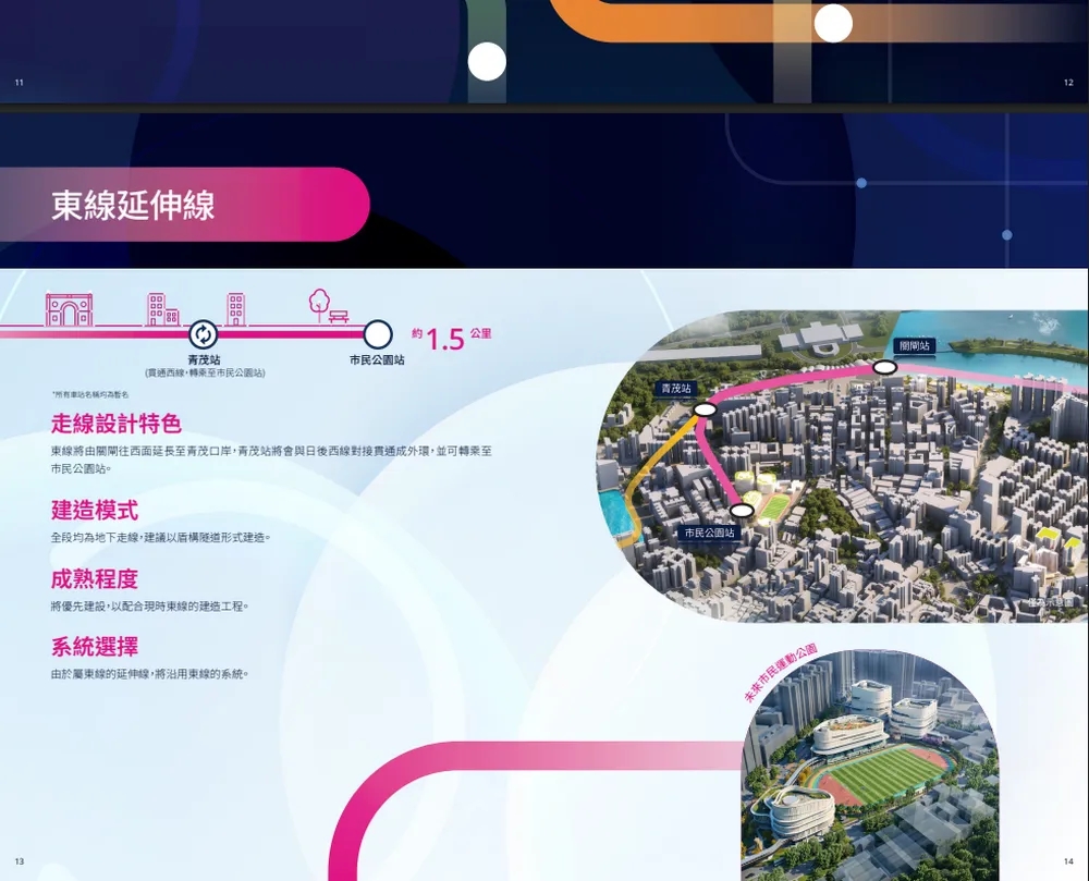 地下段在极端天气下仍可维持运作。建议南线可分期推进,先实施人工岛(港珠澳站)至东城南站与东线的接驳工程,其后再推进至妈阁站的半岛部分;鉴于走线相对独立,可考虑采用新系统并规划新车厂,透过换乘与其他轻轨线路协同运作。