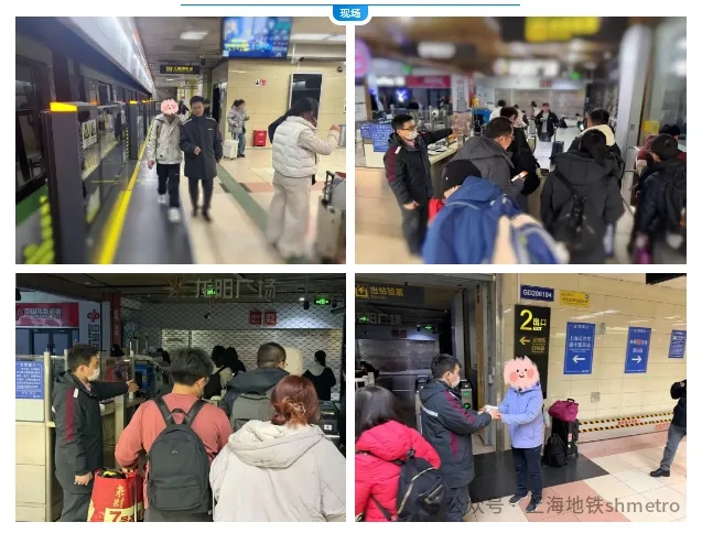 作为2号线加开列车的终点站,龙阳路站在春运返程期间迎来多轮夜间返程高峰。加开运营期间,龙阳路站同步做好站台接车、客流引导等准备工作,针对加开列车中途站点“只下不上”的安排,提前做好宣传提示,确保顺畅抵达、便捷出站,最大限度提升客流承接与疏解效率。