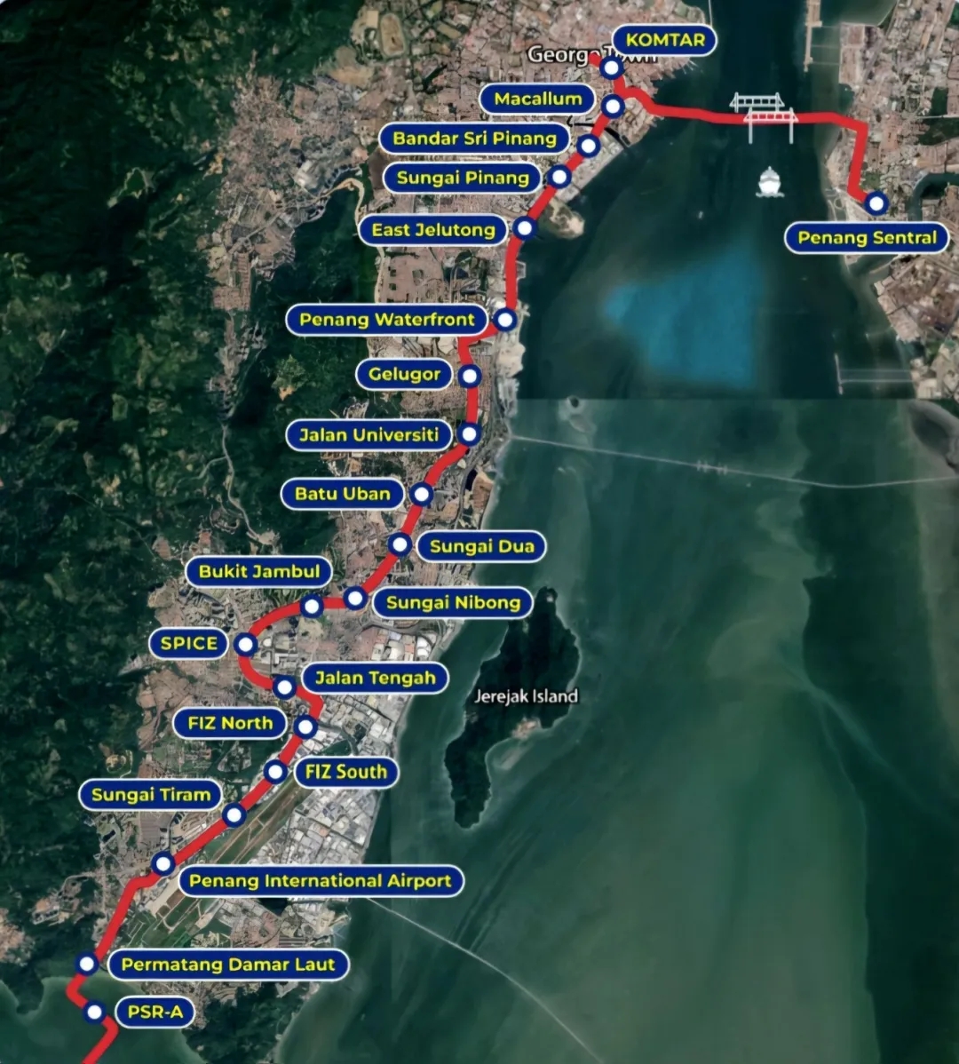 槟城轻轨珍珠线从巴耶利峇工业区附近的硅岛延伸至对岸北海的槟城中央车站,总长近30公里,预计建设成本介于130亿至160亿令吉之间。项目分为三个合同包推进:土建工程包已由Gamuda牵头的SRS联合体以79亿令吉中标;余下两包为系统工程包,以及连接槟岛和北海跨海段工程。