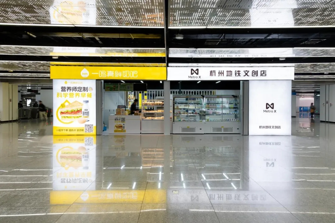 火车东站(东广场)站(6/19号线换乘):依托综合交通枢纽,增加一鸣真鲜奶吧和杭州地铁文创店,一站式满足旅客补给、伴手礼选购、城市文化体验等多重需求。