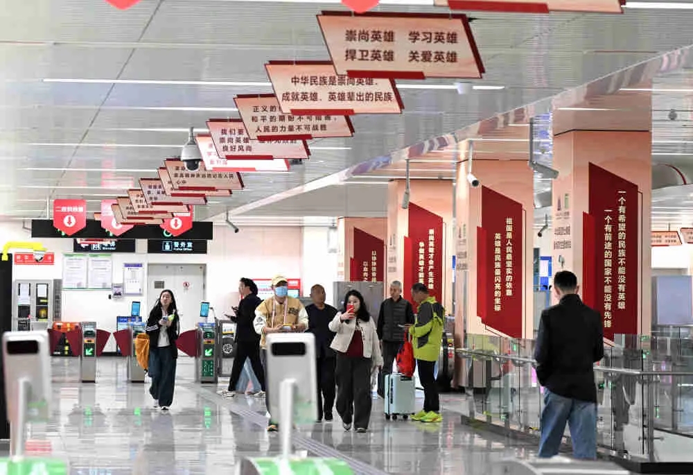 日前,华北军区烈士陵园与石家庄市轨道交通集团有限责任公司携手打造的以“崇尚英烈”为主题的烈士陵园地铁站正式亮相。这座地铁站将红色文化融入城市公共空间,通过沉浸式展陈、互动式体验和庄重氛围营造,打造出一个弘扬英烈精神、厚植爱国情怀的“红色课堂”。