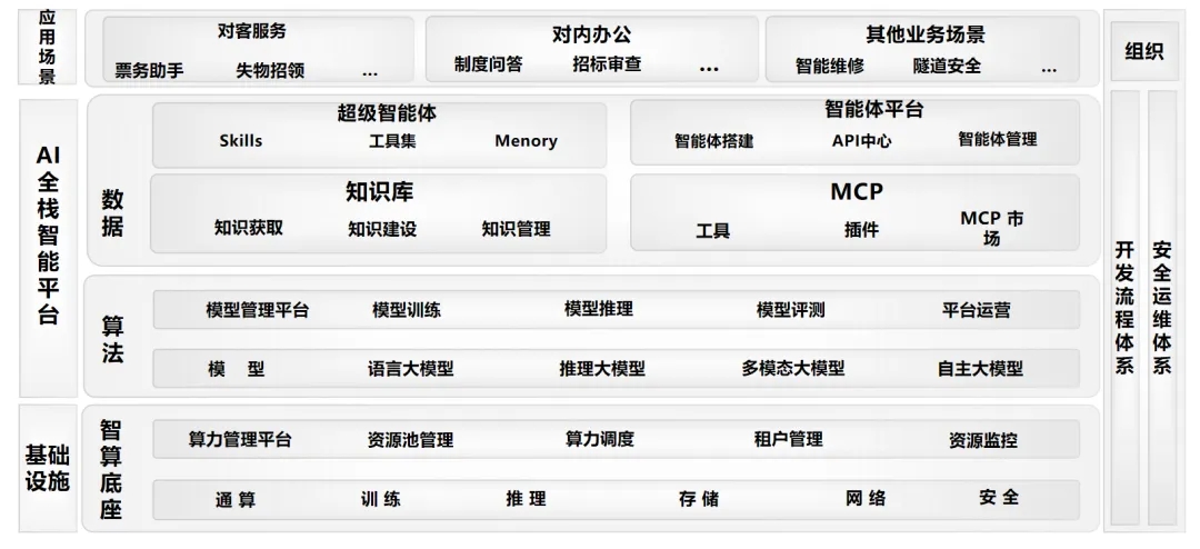 2025年初,随着AI大模型技术兴起,苏州地铁敏锐意识到:AI不再是锦上添花,而是必答题。去年3月,苏州地铁启动数字底座建设及人工智能总体规划,以“小步快跑”节奏,在不到一年时间内,构建起从底层基础设施到上层场景应用的完整AI架构体系,为各类智能应用提供了坚实沃土。