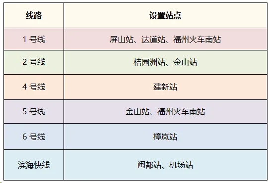 完成增设后,福州地铁全线网合计11个站点,设有“儿童友好通道”设置站点如下。