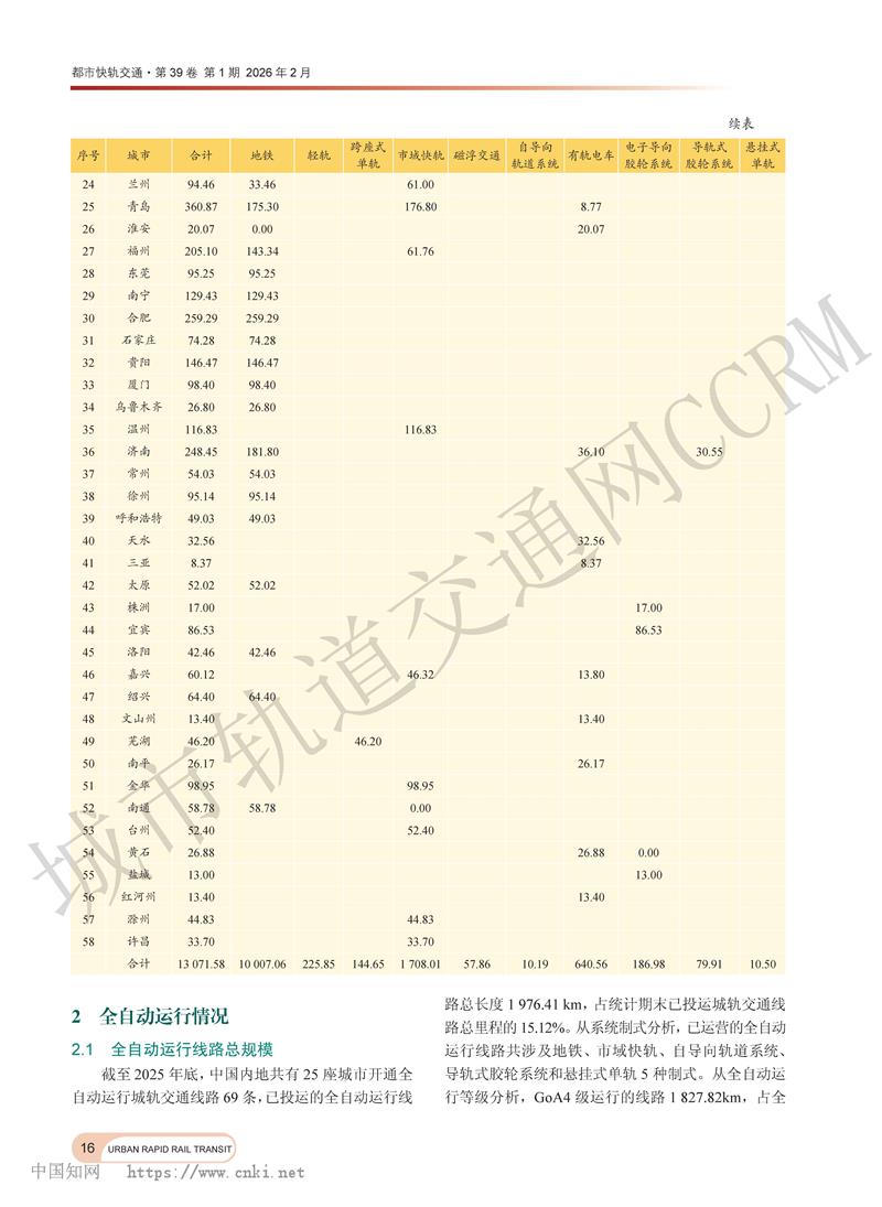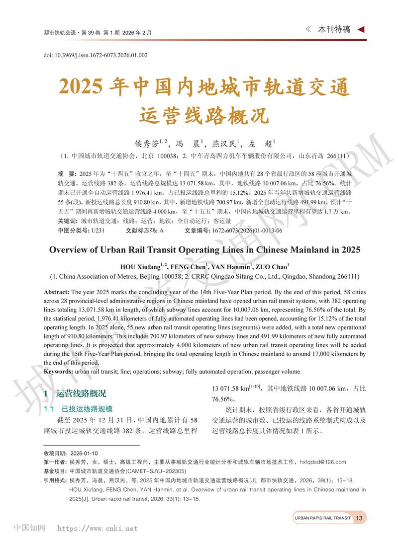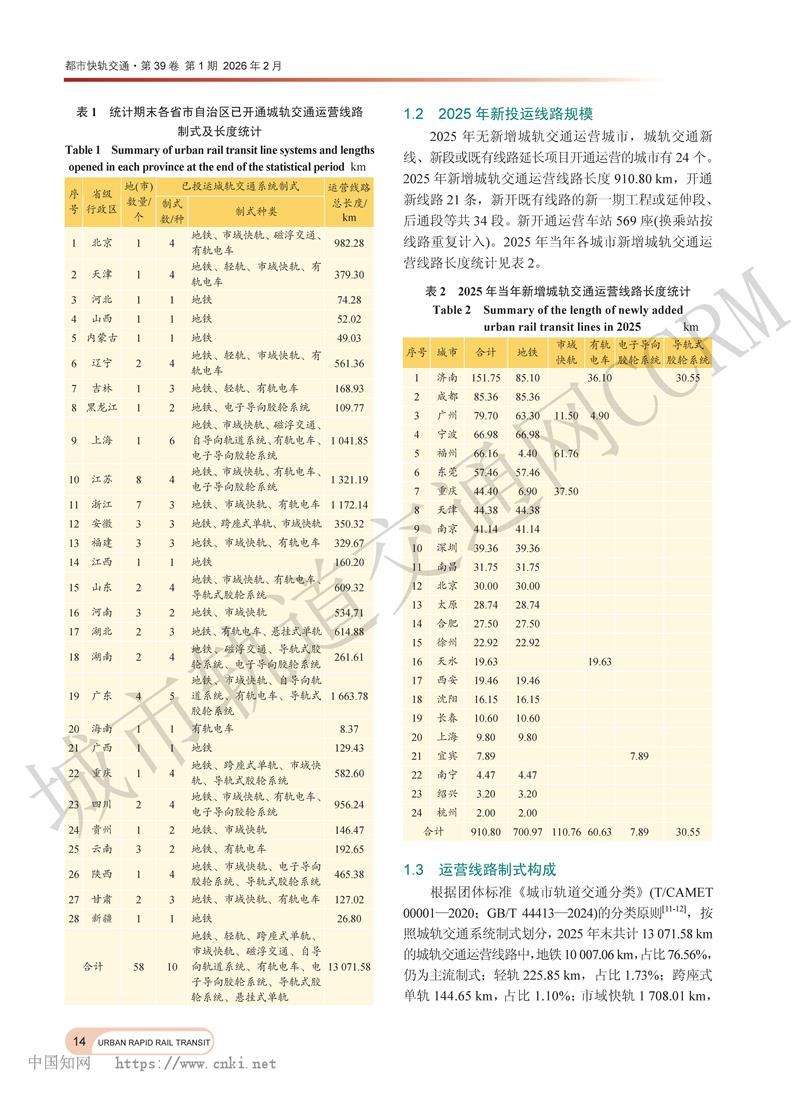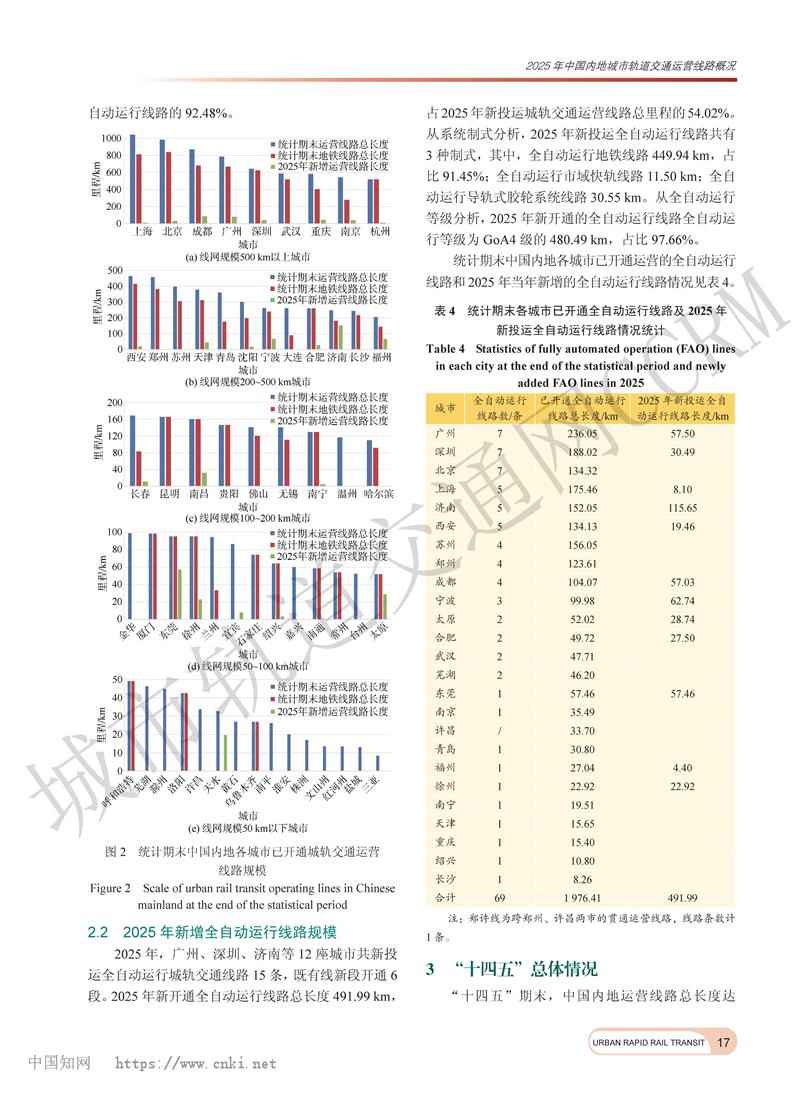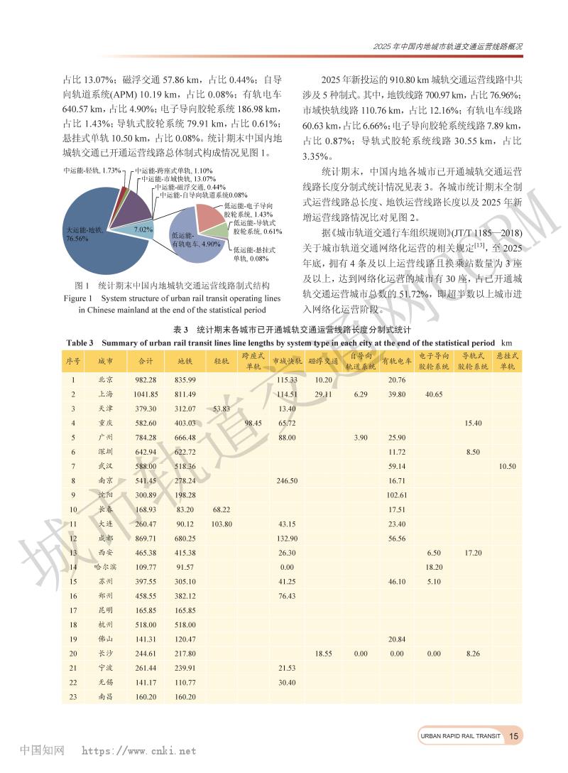 2025年中国内地城市轨道交通运营线路概况