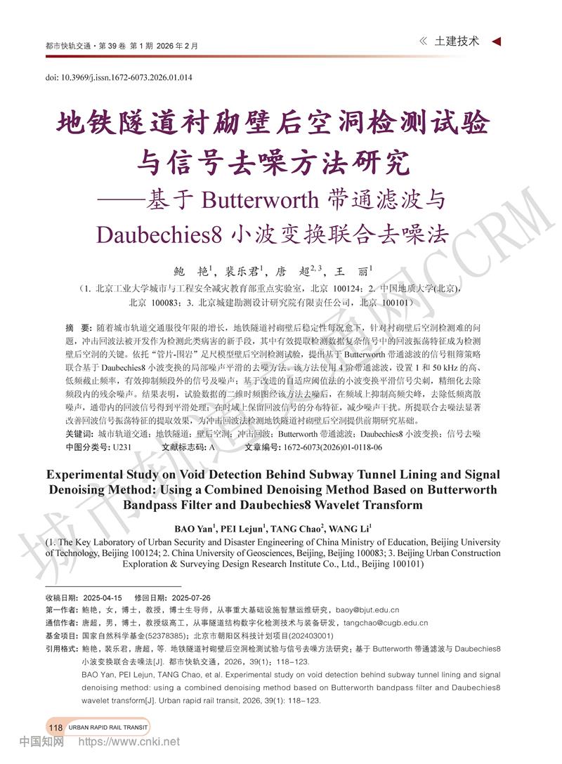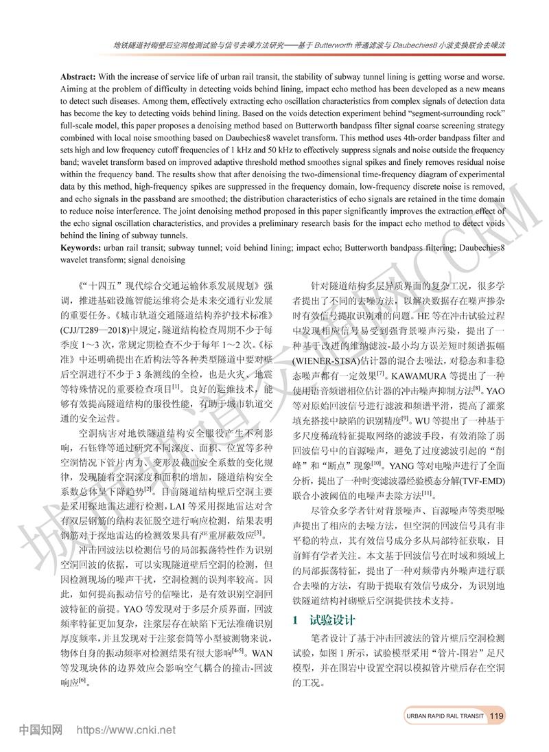 地铁隧道衬砌壁后空洞检测试验与信号去噪方法研究