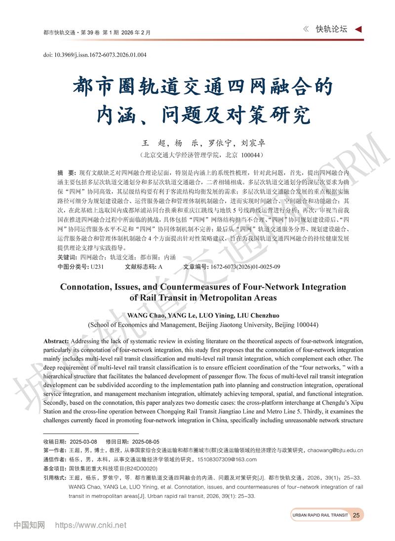 都市圈轨道交通四网融合的内涵、问题及对策研究