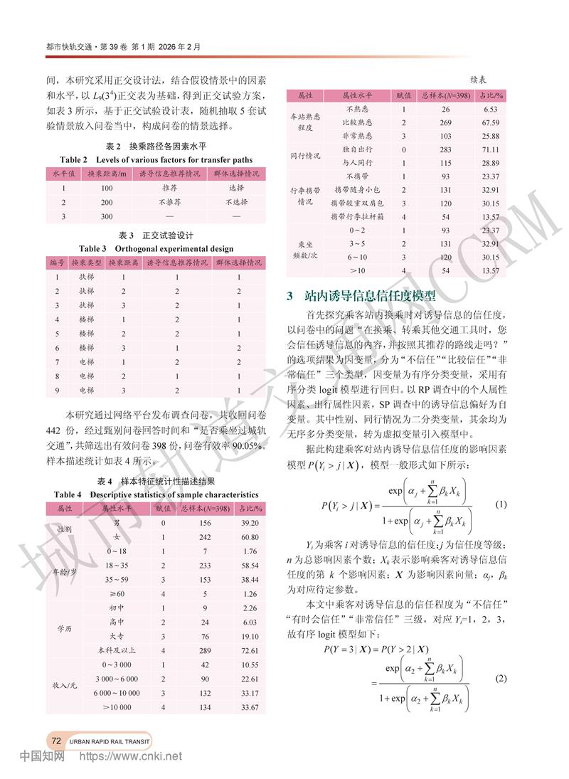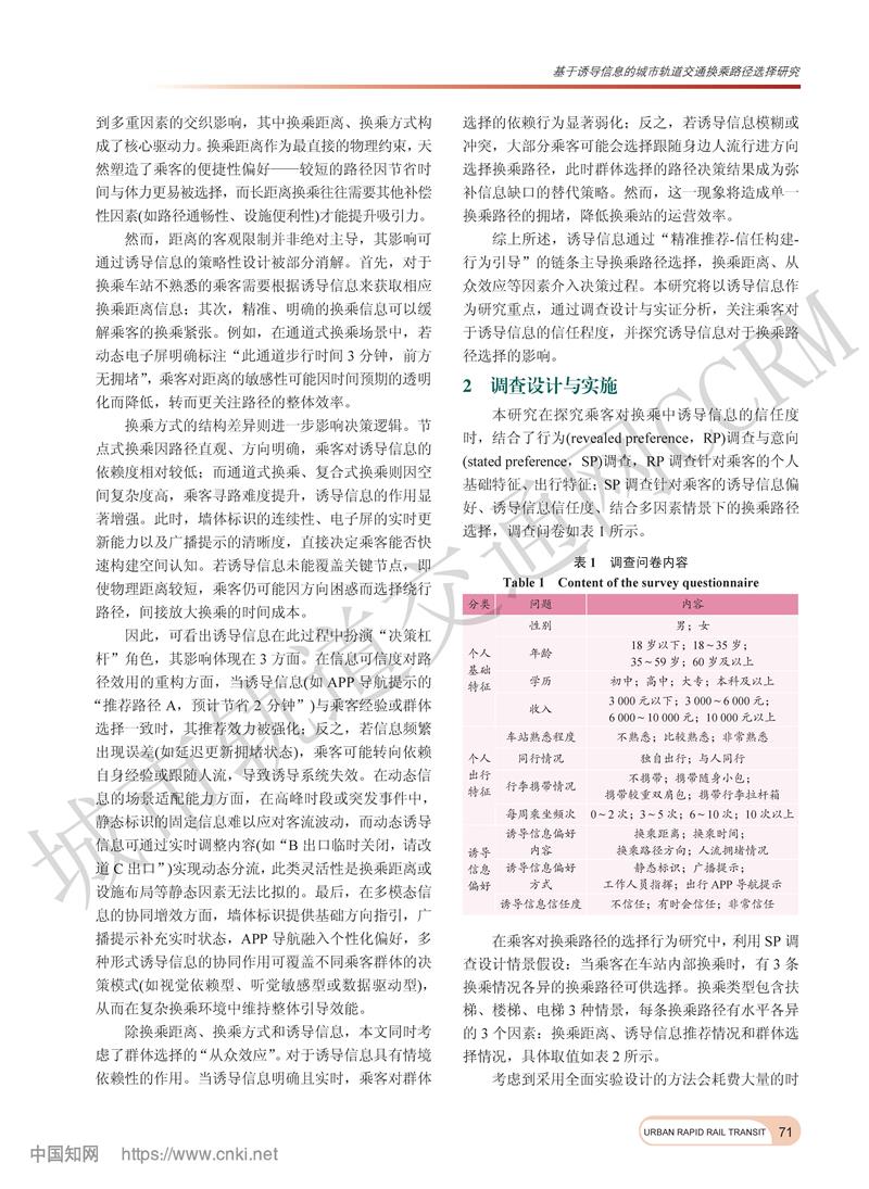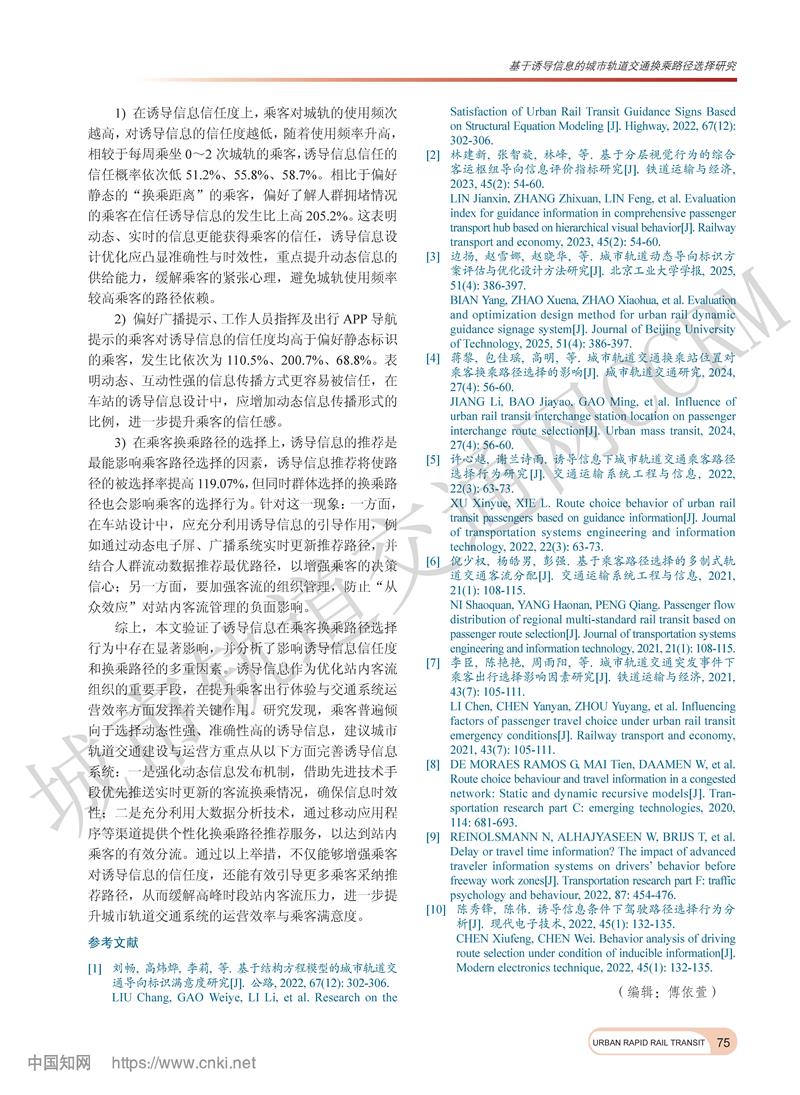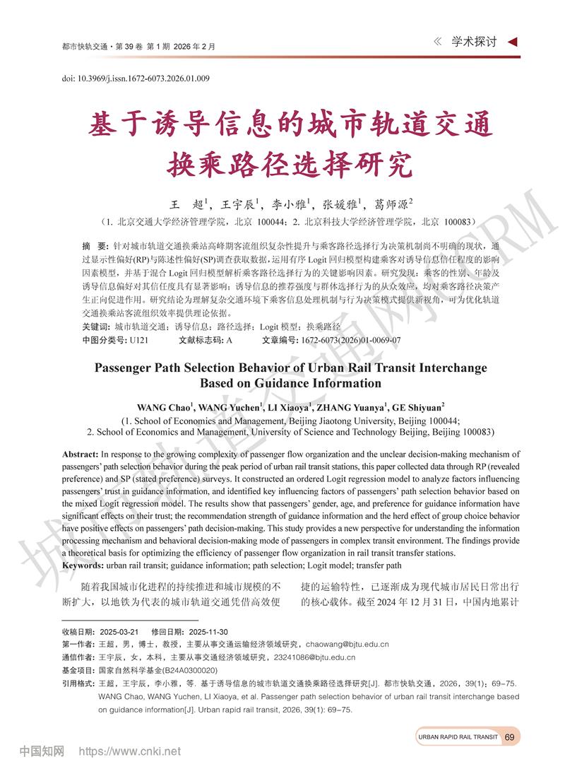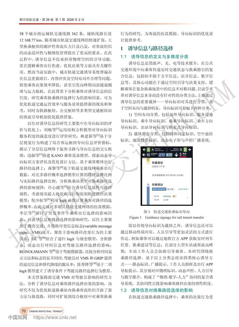 基于诱导信息的城市轨道交通换乘路径选择研究