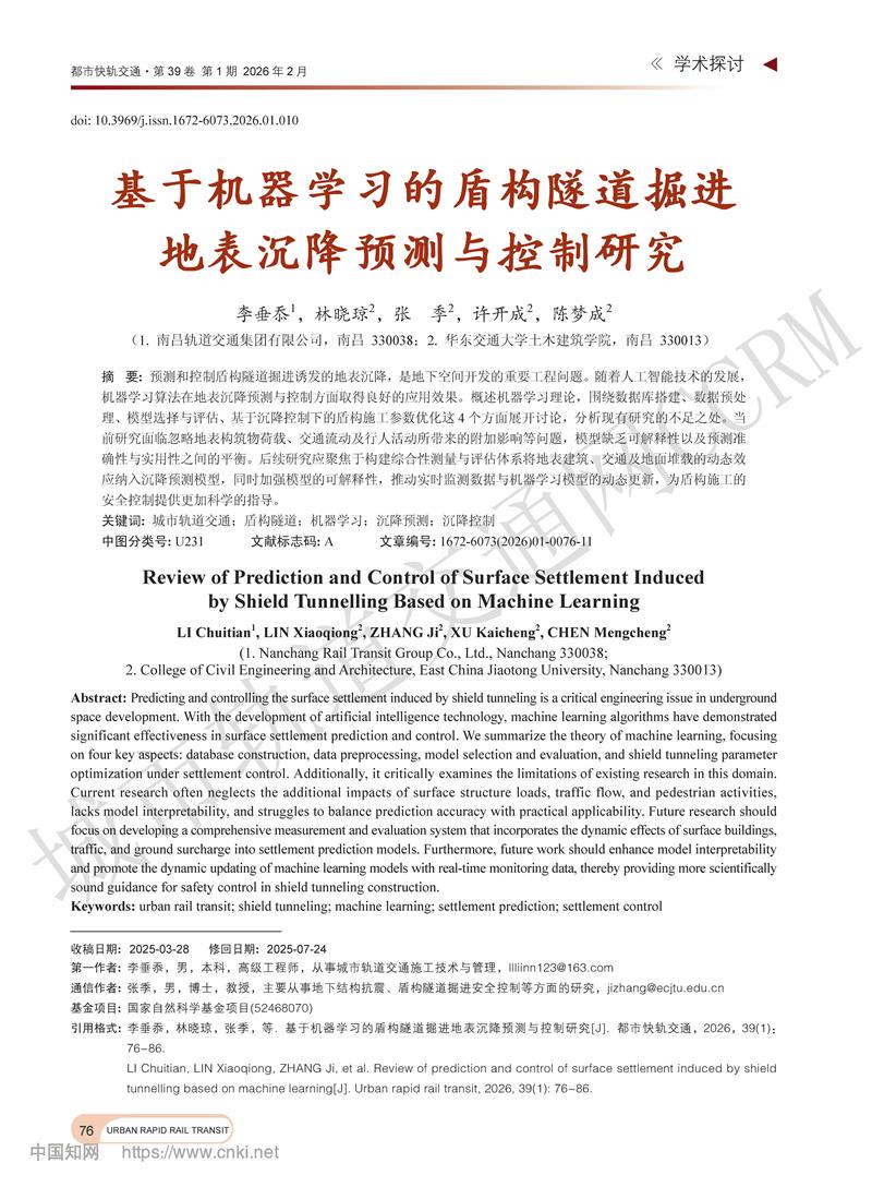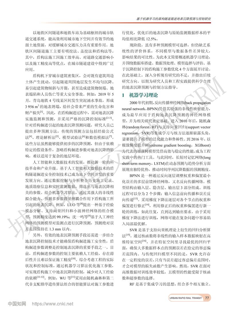 基于机器学习的盾构隧道掘进地表沉降预测与控制研究