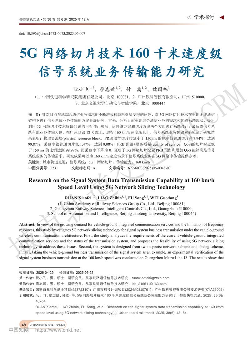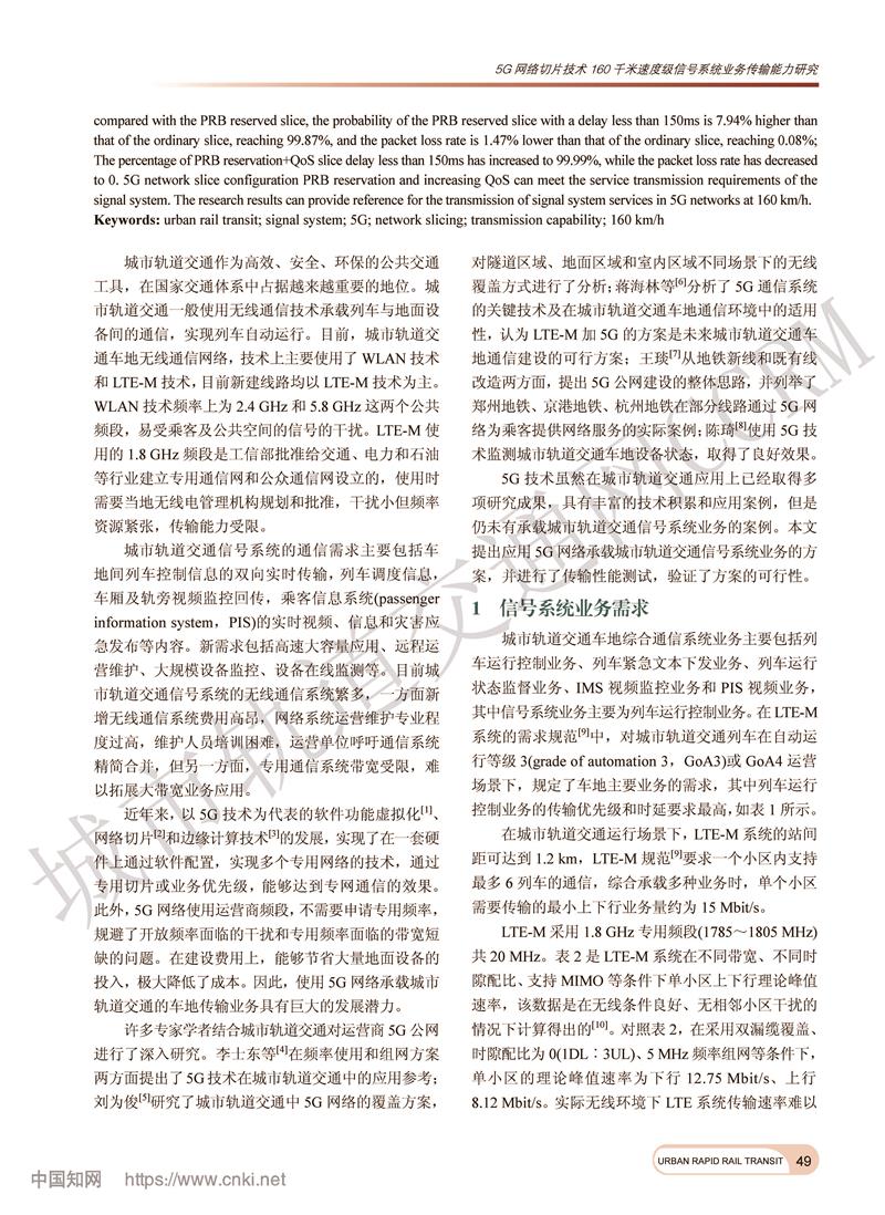5G网络切片技术160千米速度级信号系统业务传输能力研究