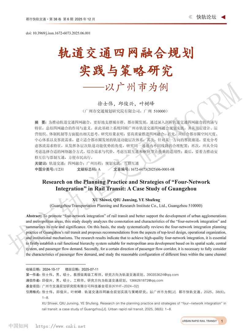 轨道交通四网融合规划实践与策略研究——以广州市为例