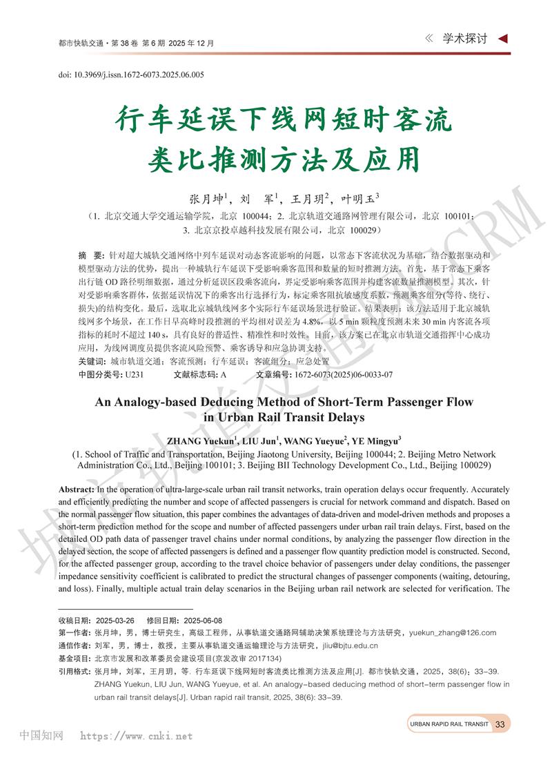 行车延误下线网短时客流类比推测方法及应用