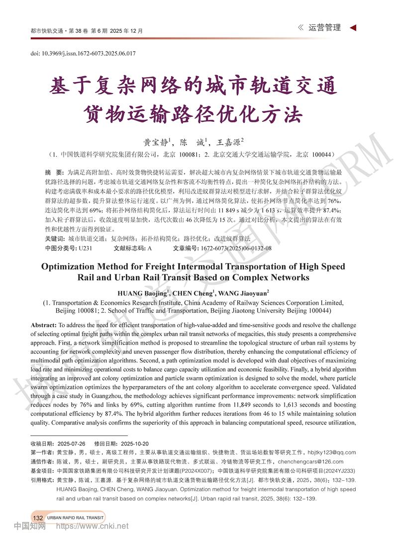 基于复杂网络的城市轨道交通货物运输路径优化方法