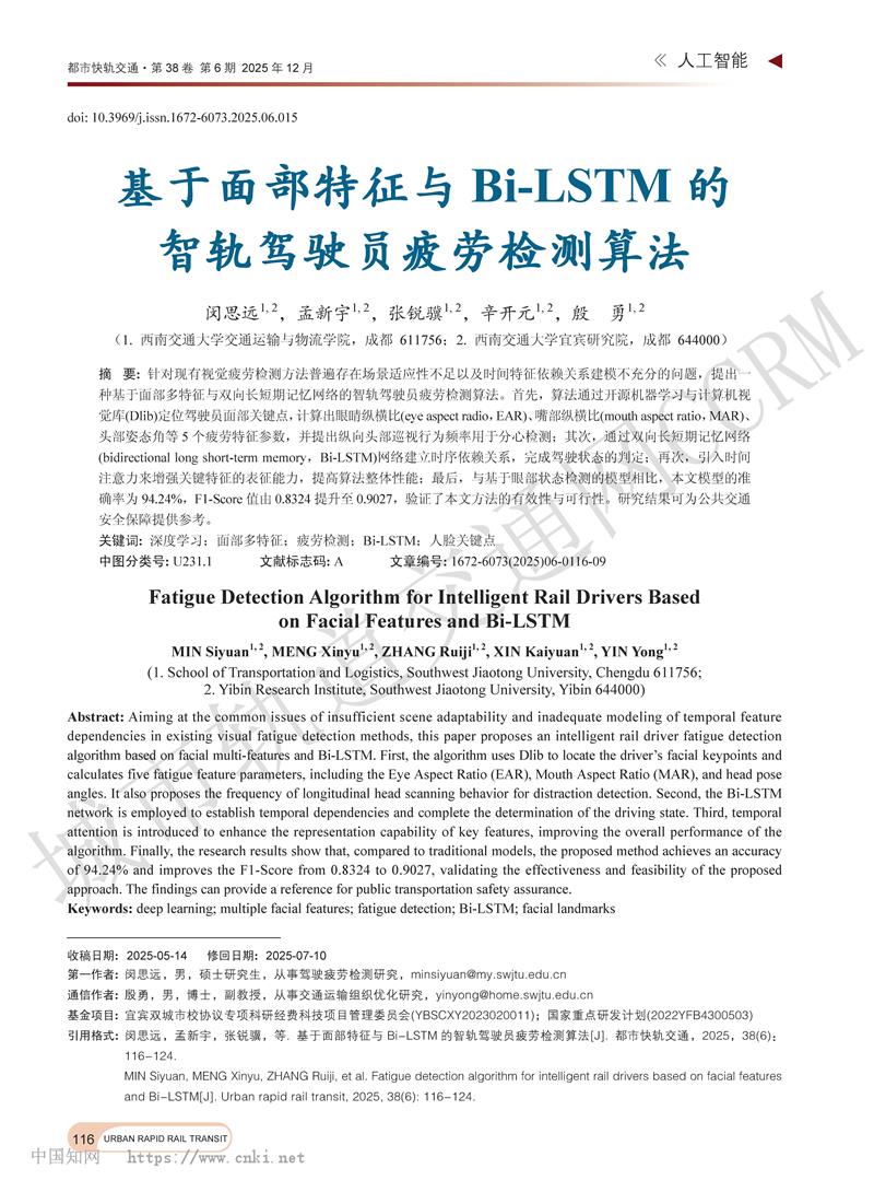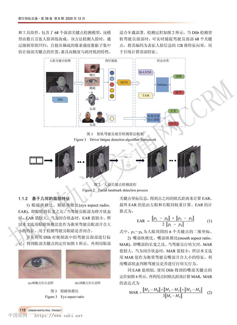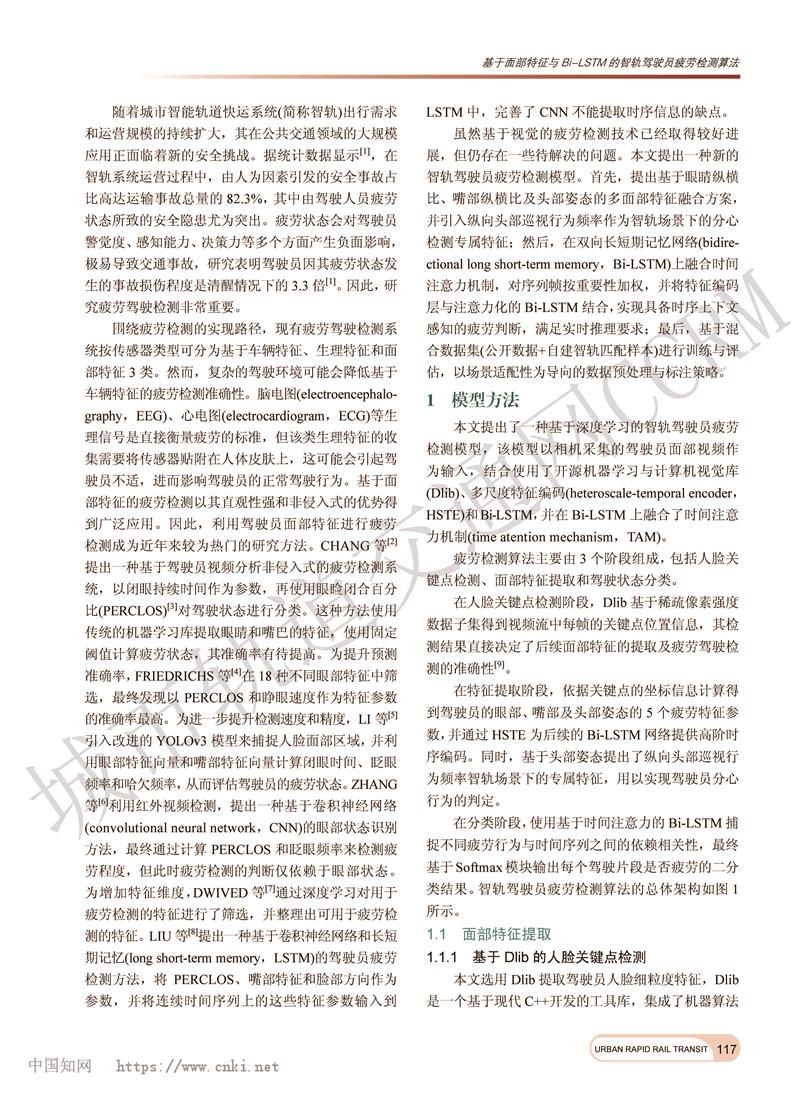 基于面部特征与Bi-LSTM的智轨驾驶员疲劳检测算法