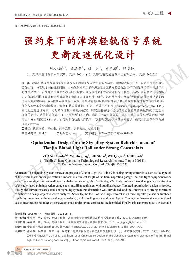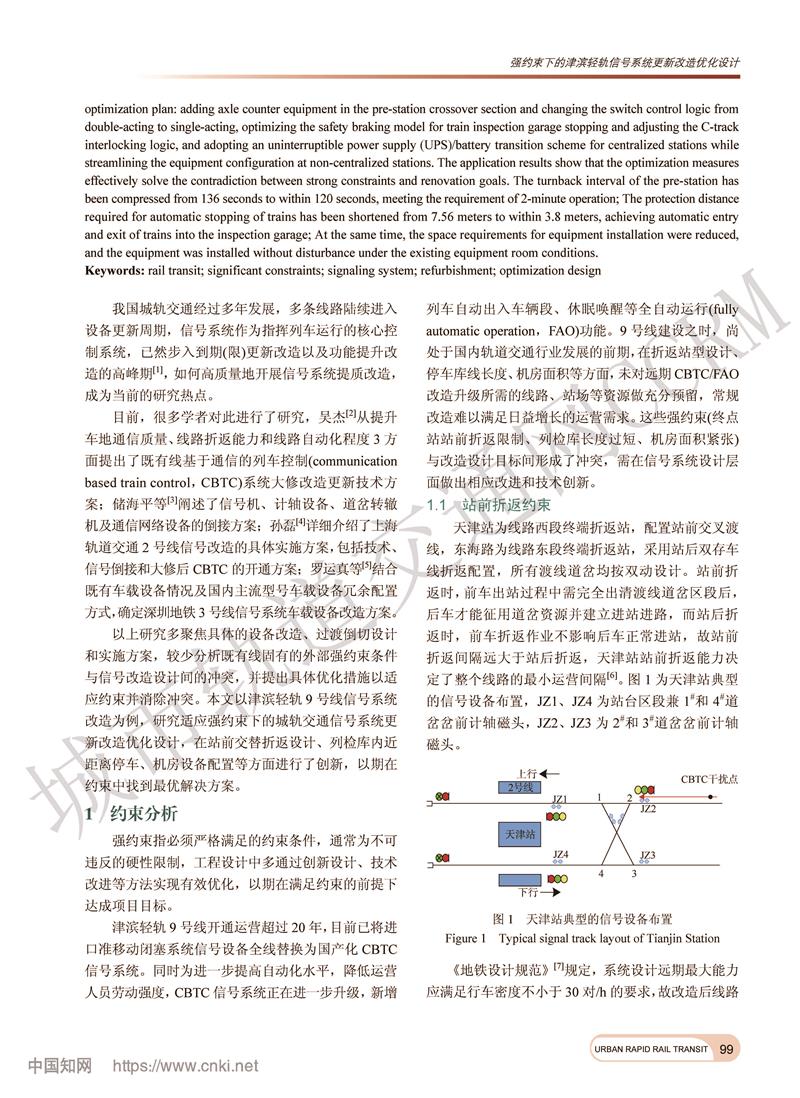 强约束下的津滨轻轨信号系统更新改造优化设计