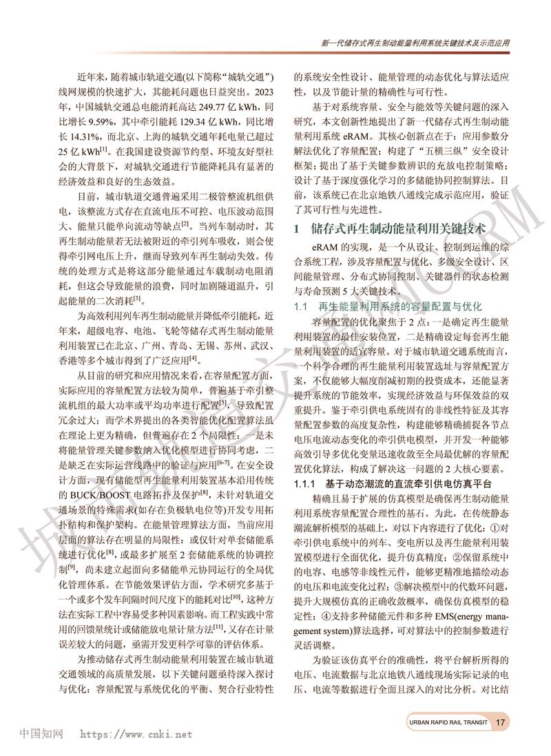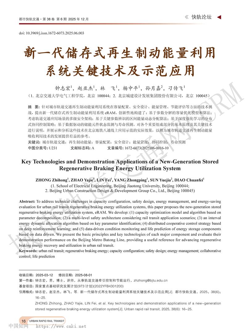 新一代储存式再生制动能量利用系统关键技术及示范应用