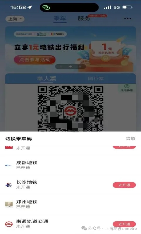 图2 “Metro大都会App”南通地铁互联互通展码